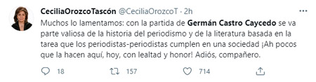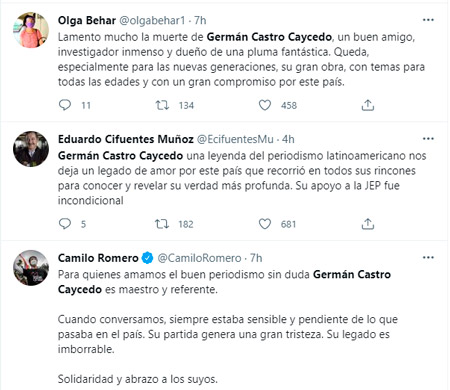 Al confirmarse la muerte de uno de los mejores periodistas del país y un gran contador de historias para sensibilizar a las personas, varios de sus colegas y seguidores expresaron su dolor y condolencias a su familia.