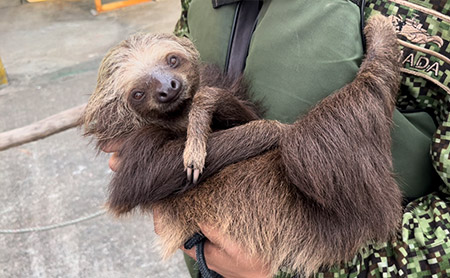 En el río San Juan, zona rural de Buenaventura, fueron rescatados tres perezosos de dos dedos (Choloepus hoffmanni) que se encontraban en una vivienda de la comunidad, ya que sus captores pretendían consumirlos.