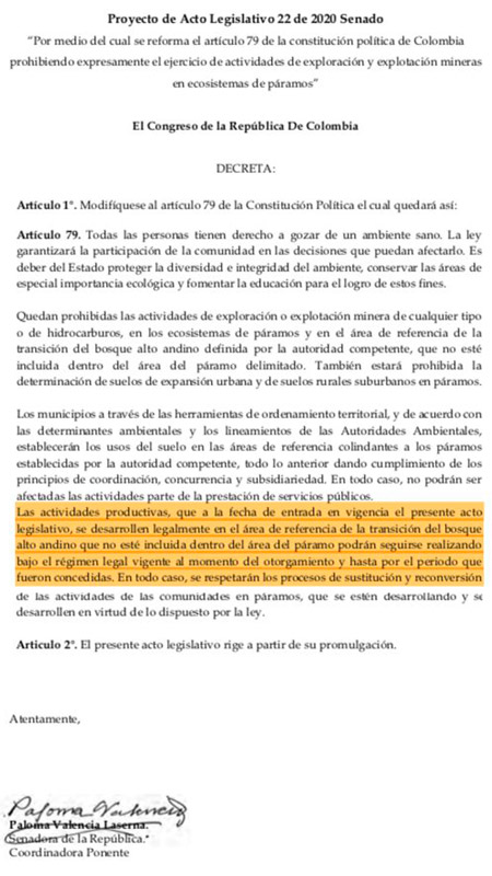 SE CAYÓ REFORMA CONSTITUCIONAL QUE PERMITÍA MEGAMINERÍA EN PÁRAMOS
